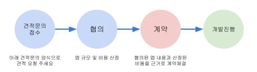 앱 개발 진행에 대한 상호 의견이 일치되면 직접 미팅을 통해 최종 견적가를 조율하고 계약을 체결합니다.